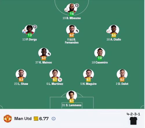 不过,曼联的回应迅速而坚决。第36分钟,阿森纳中场苏维门迪回传失误,曼联前锋姆伯莫机敏抢断后单刀推射扳平比分。下半场开始仅5分钟,B费与多尔古在禁区前沿完成精妙撞墙配合,后者远射轰出世界波,曼联2-1反超。